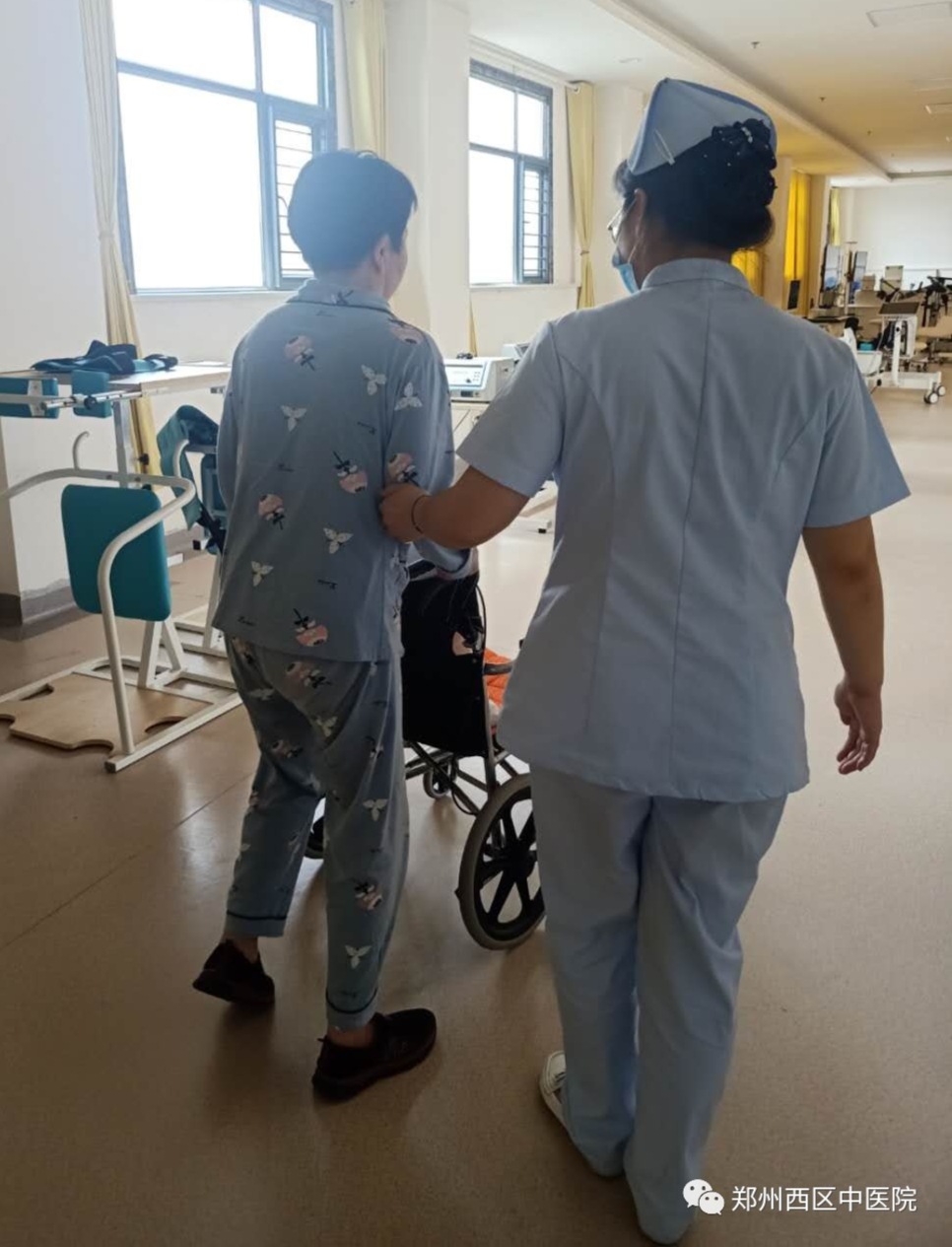 在中醫(yī)科醫(yī)護人員及我院康復(fù)科團隊的共同協(xié)作下,王大姐的病情逐漸好轉(zhuǎn),從剛來的時候右手指不能活動、右下肢不能站立,到后來可以用右手吃飯,能獨立行走10米、20米……100米、200米……再到出院時可以獨立上下樓梯。這個過程,只有親身體會過的人,才能明白這一路走來,需要付出多少艱辛與汗水。